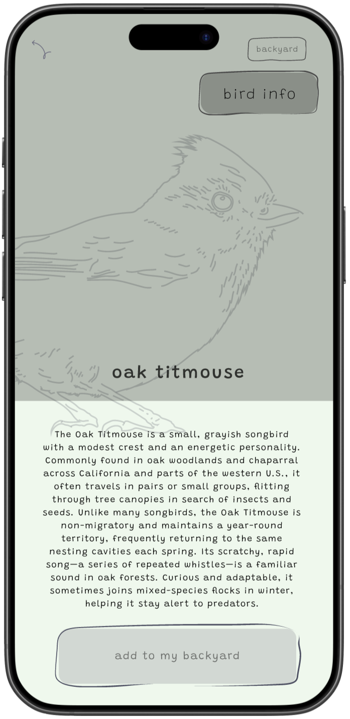 Led end-to-end design of Backyard Birding Bingo—a kids’ app that turns local birdwatching into a learn-and-collect experience. Children discover birds in their area, identify them, and save sightings to a personal “Backyard.” Progress unlocks quick educational mini-games and whimsical hats for their birds to reinforce learning.